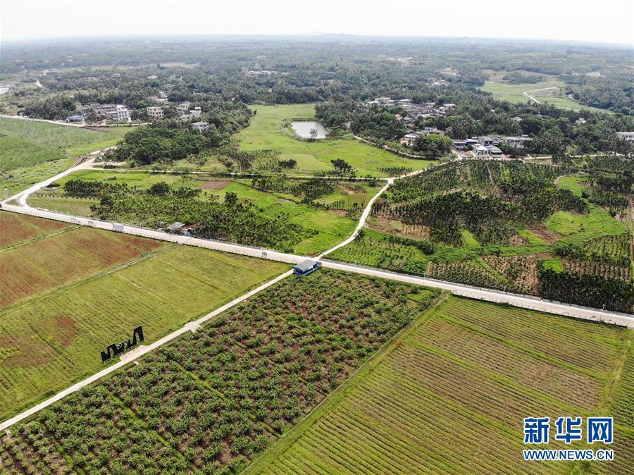 这是海南琼海龙寿洋国家农业公园(5月20日摄,无人机照片)。 海南省琼海市龙寿洋国家农业公园将当地的农业生产与自然风光相结合,发展乡村旅游业,把农村、农田的基础设施进行公园化、观光化提升,把农田本身变成了市民和游客免费观光的公园。该公园还吸纳周边村民就业,依托乡村旅游带动农产品销售,促进农旅融合发展,助力乡村振兴。 新华社记者 张丽芸 摄