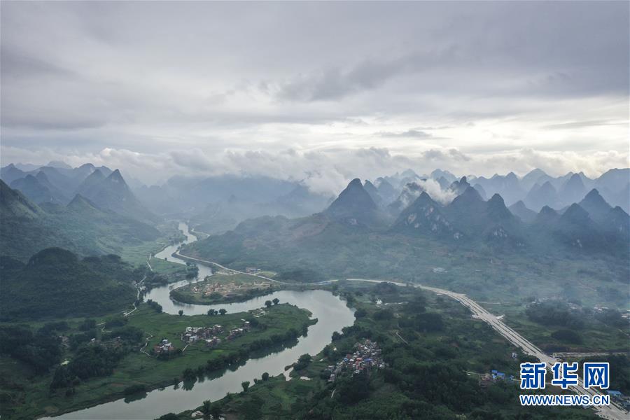广西环江毛南族自治县风光(5月21日摄,无人机照片)。新华社记者 曹祎铭 摄