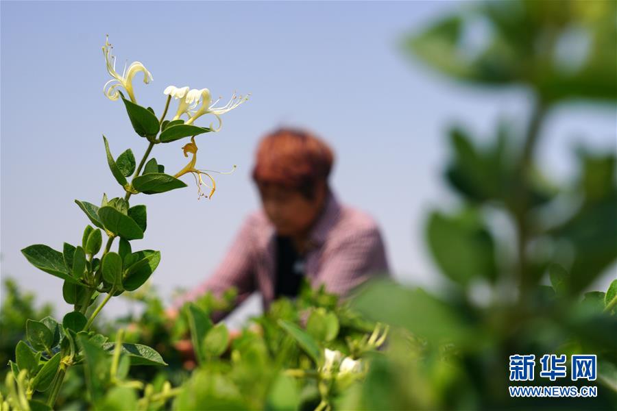 5月21日,河北省清河县农垦金银花种植专业合作社社员在采收金银花。 2017年以来,河北省清河县在推进农业产业结构调整过程中,结合市场需求,立足当地土壤、气候特点,依托公司“订单”引导农民发展金银花种植。目前,清河县金银花种植面积近2000亩,带动40多个村庄的2000余名农民人均增收千元以上。 新华社记者 牟宇 摄