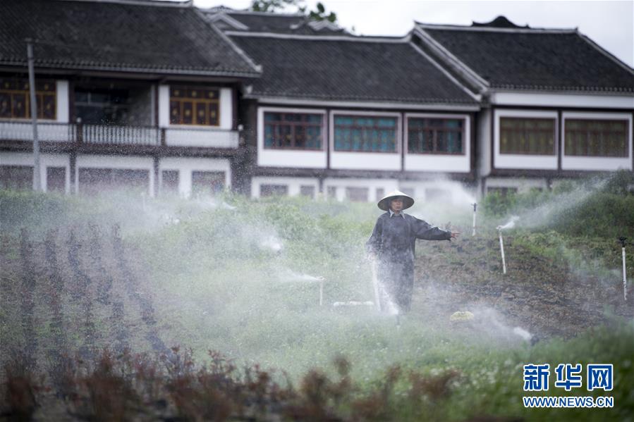 5月21日,农民在贵州省毕节市黔西县林泉镇海子村苗木基地劳作。 初夏时节,农民在田间劳作的身影构成一幅幅优美画卷。 新华社发(尚宇杰 摄)