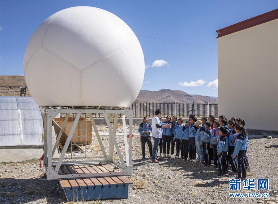 5月23日,工作人员为参加“公众科学日”活动的学生介绍珠峰站内的科研设备。 新华社记者 孙非 摄