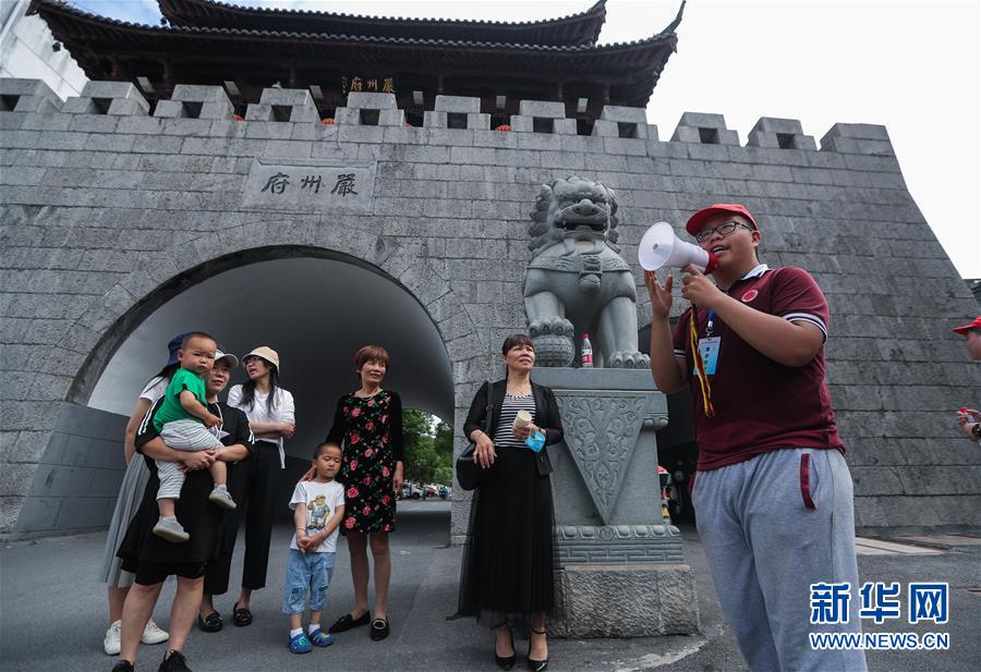 5月23日,学生们在梅城古镇参加劳动实践课,开展导游服务,学习为游客介绍当地的历史及风土人情。 当日,在位于浙江省建德市梅城古镇的浙江省严州中学内,包括农耕园、果乐园、工艺园、土木园和微创园等在内的校园劳动基地亮相,高一年级400多名师生开启了各具特色的劳动实践,标志着该学校劳动教育实践活动的全面实施,开启劳动教育“必修课”模式。严州中学把劳动教育课分为“生产性劳动、服务性劳动、智慧性劳动”三大模块,让孩子们体验劳动实践、掌握生活技能、培养劳动素养。 今年3月,中共中央、国务院印发了《关于全面加强新时代大中小学劳动教育的意见》,就加强新时代大中小学劳动教育提出了意见,要在大中小学设立劳动教育必修课程。 新华社记者 徐昱 摄