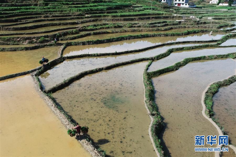 5月23日拍摄的贵州省铜仁市江口县坝盘镇高墙村竹林科组梯田(无人机照片)。 新华社发(李鹤 摄)
