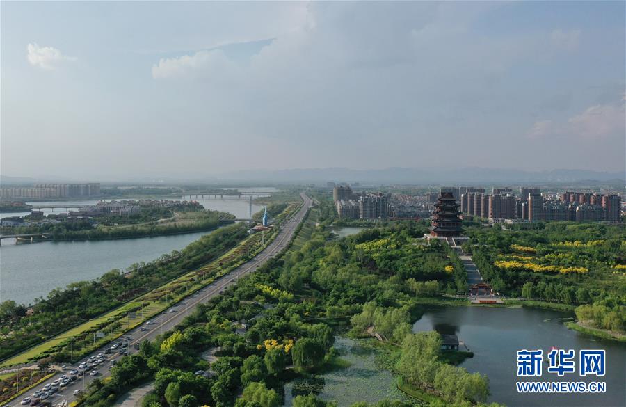 5月26日,迁安市黄台湖水利风景区景色(无人机照片)。新华社记者杨世尧摄