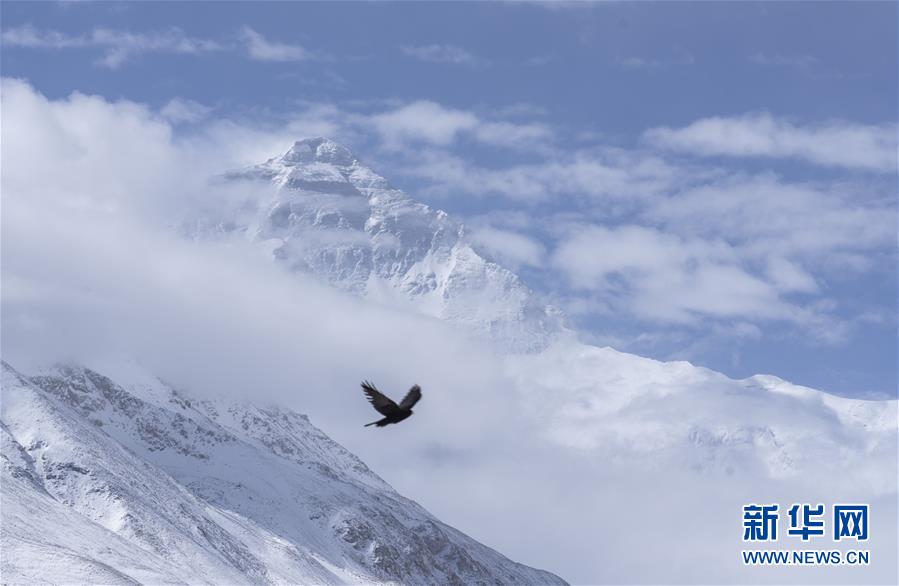 被云雾笼罩的珠峰(5月27日摄)。 5月27日,2020珠峰高程测量登山队成功登顶世界第一高峰珠穆朗玛峰。他们在峰顶竖立觇标,安装GNSS天线,开展各项峰顶测量工作。45年前的今天,中国人首次将觇标带至珠峰峰顶。 新华社记者 洛登 摄