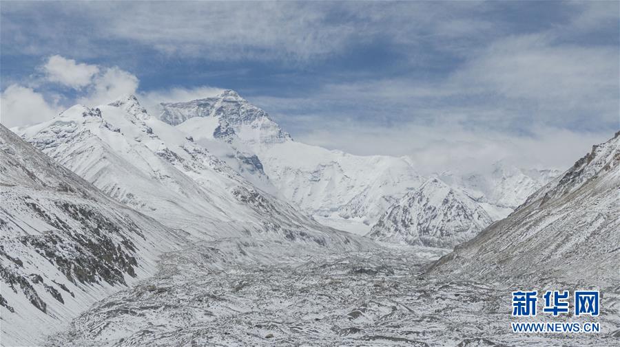 这是5月27日拍摄的珠穆朗玛峰(无人机照片)。 5月27日,2020珠峰高程测量登山队成功登顶世界第一高峰珠穆朗玛峰。他们在峰顶竖立觇标,安装GNSS天线,开展各项峰顶测量工作。45年前的今天,中国人首次将觇标带至珠峰峰顶。 新华社记者 普布扎西 摄