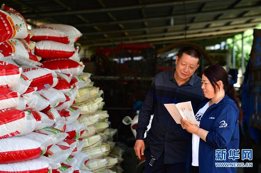 5月27日,在河南省南阳市宛城区汉冢乡万庄村,高新洋和妻子刁静莹在统计仓库中化肥等农资的数量。新华社记者 冯大鹏 摄