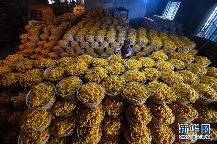 5月27日,在桐乡市凤鸣街道兴民蚕业专业合作社内,工作人员整理刚刚从蚕农手中收购的“黄金茧”。该蚕业合作社与浙江蚕缘家纺股份有限公司合作,采取订单式养殖的方式,今年共计发放黄金蚕茧种316张,每张产量约120斤,今年整个合作社预计收获约38000斤,大大提升了蚕农的经济收益。 近期,蚕桑之乡浙江省桐乡市的蚕农们迎来了蚕茧丰收的季节,其中新品种“黄金茧”的增收效果尤其明显。据介绍,与普通蚕丝相比,色泽金黄的黄金蚕丝中叶黄素含量高,抗菌效果更好,深受市场青睐。2020年春季,浙江省桐乡市共计发放黄金蚕茧种1225张,产量预计75吨,总产值近300万元,较普通蚕茧增收约20%,成为当地农业增收的亮点。 浙江省桐乡市是我国蚕桑的重要产地,“桐乡蚕桑习俗”也被国务院列入第二批国家级非物质文化遗产名录。 新华社记者 徐昱 摄