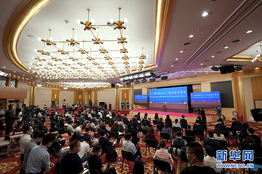 5月28日,国务院总理李克强在北京人民大会堂出席记者会并回答中外记者提问。这是记者在梅地亚中心多功能厅采访。 新华社记者 刘金海 摄