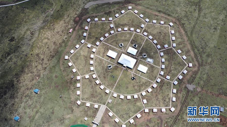 这是5月25日拍摄的甘南藏族自治州碌曲县尕海镇尕秀村帐篷城景区(无人机照片)。 新华社记者 陈斌 摄