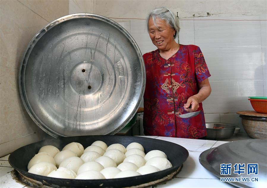 5月28日,王秀琴掀开锅盖,准备将蒸好的馒头起锅。 新华社记者 李嘉南 摄