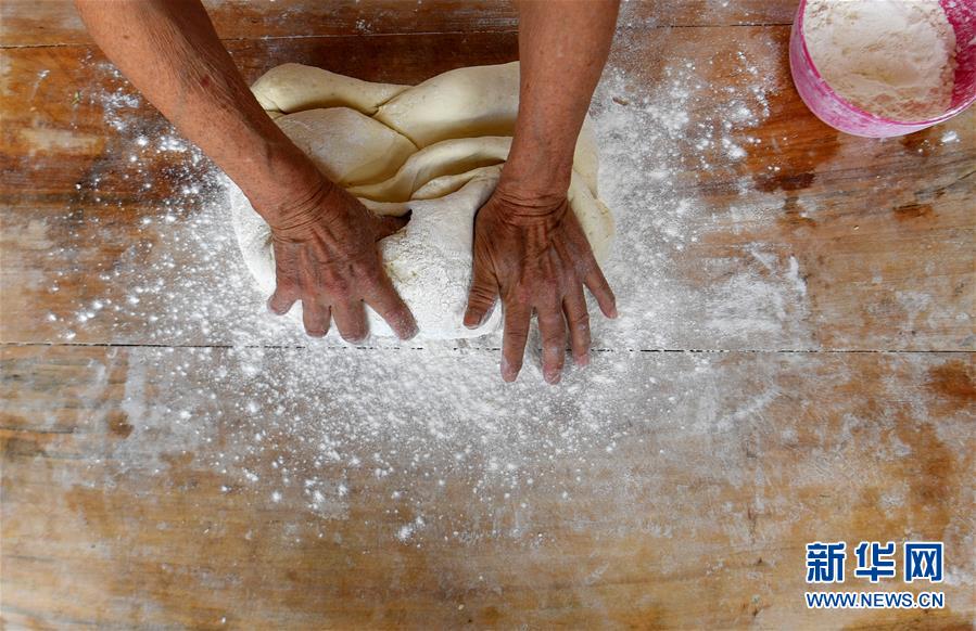 5月28日,王秀琴在揉面准备蒸馒头。 新华社记者 李嘉南 摄