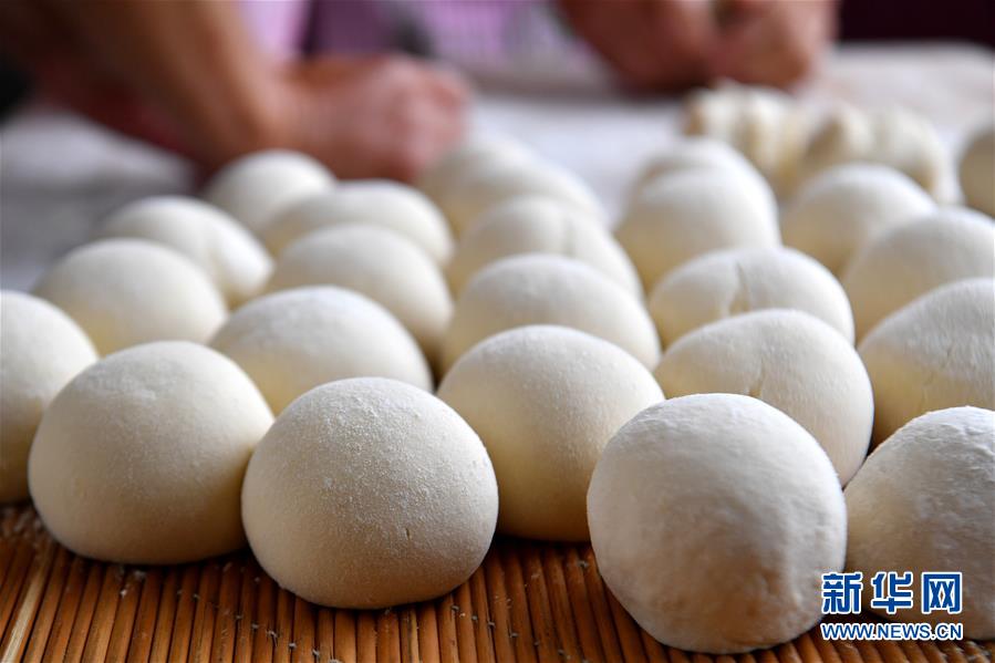 5月28日,王秀琴将揉好的馒头码放整齐。 新华社记者 李嘉南 摄