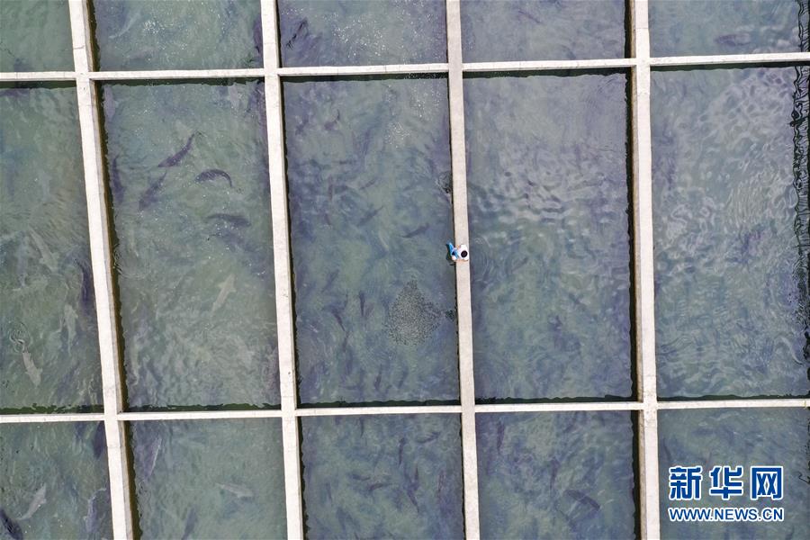 5月27日拍摄的大河乡红光村金丰泰养殖专业合作社的鲟鱼养殖鱼塘(无人机照片)。 大河乡红光村位于重庆巫溪县的大山深处,近年来,红光村因地制宜充分依靠优质水资源,成立金丰泰养殖专业合作社,共计投入150万元修建标准化鱼塘32个。金丰泰养殖专业合作社运用“村集体+合作社+农户模式”,发展以鲟鱼为主的特种鱼类养殖项目,壮大村集体经济,带动农户增收致富。 新华社记者 刘潺 摄