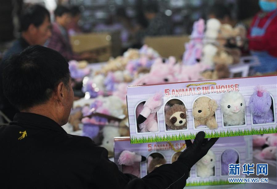 5月30日,富源玩具公司工人在包装出口的玩具产品。 新华社记者 范长国 摄