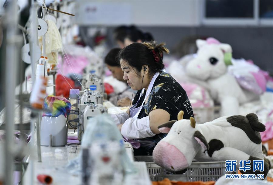 5月30日,富源玩具公司工人在制作出口的玩具产品。 新华社记者 范长国 摄