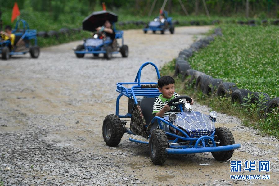 5月31日,小朋友在滕头乐园体验沙地卡丁车。新华社记者 黄宗治 摄