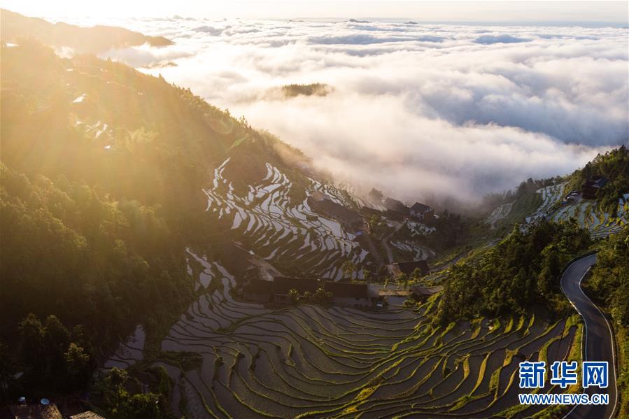 这是5月30日在湖南省新化县水车镇拍摄的紫鹊界梯田(无人机照片)。新华社发(陈思汗 摄)