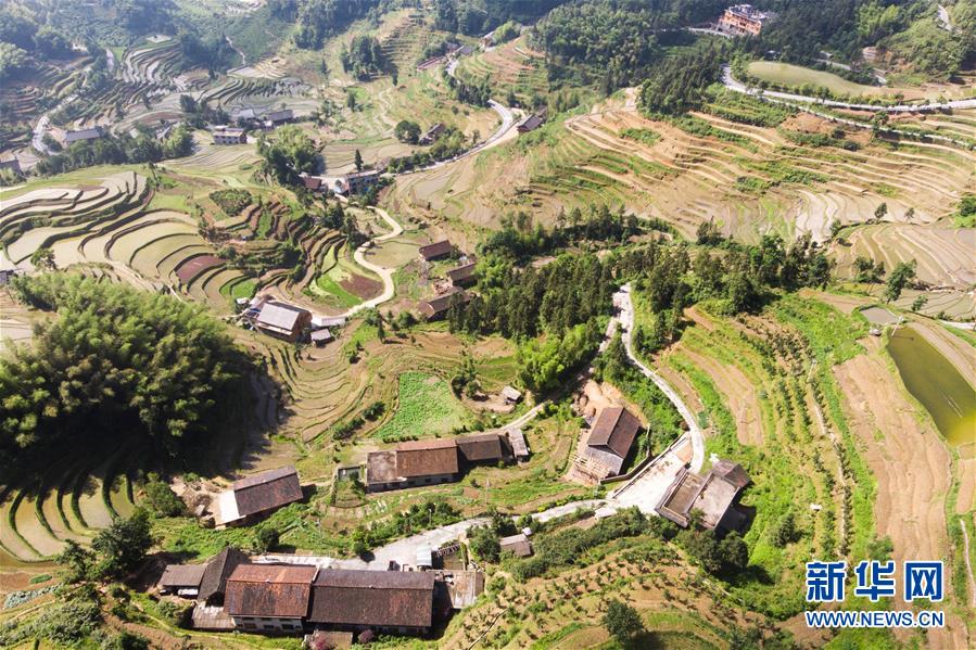 这是5月30日在湖南省新化县水车镇拍摄的紫鹊界梯田(无人机照片)。 新华社发(陈思汗 摄)
