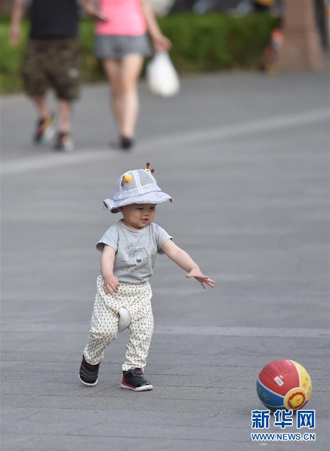 5月31日,小朋友在北京钟鼓楼文化广场玩耍。新华社发(陈钟昊摄)