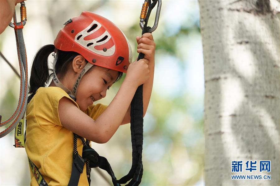 5月31日,小朋友在呼和浩特市的阿尔泰游乐园游玩。 “六一”将至,呼和浩特市不少孩子在家长的陪伴下来到游乐园,在欢声笑语中迎接儿童节的到来。 新华社发(贝赫摄)