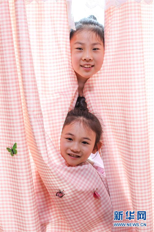 图为5月31日,朱皓嫡(下)与陈熙妍在练舞的间隙留影。 新华社记者欧东衢摄