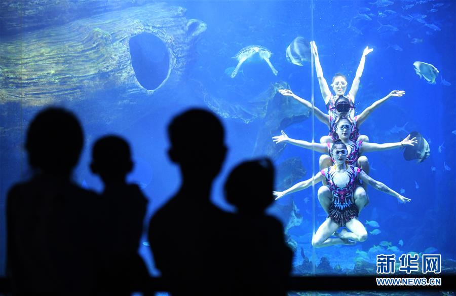 5月31日,小朋友和家长在位于贵阳市的多彩贵州城极地海洋世界观赏“美人鱼”表演。“六一”国际儿童节临近,各地举行丰富多彩的活动,让孩子们在欢乐中迎接自己的节日。新华社发(赵松 摄)
