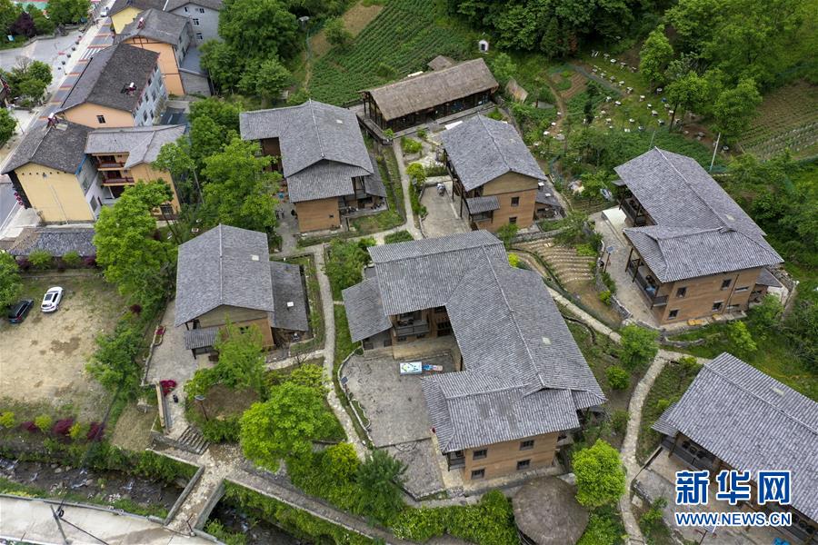 城口县东安镇亢谷景区的一个民宿集中点(无人机照片,5月27日摄)。新华社记者 刘潺 摄
