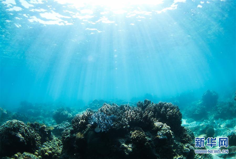 这是海南三亚蜈支洲岛旅游区海洋牧场中的珊瑚(4月29日摄)。 新华社记者 杨冠宇 摄