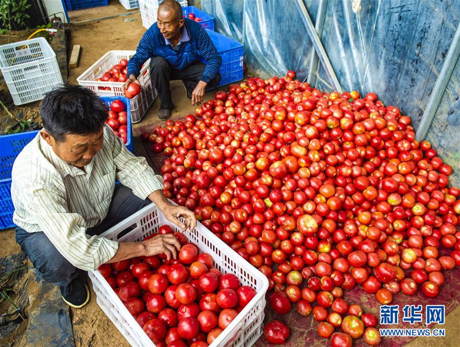 6月2日,枣强县恩察镇郭堂村的菜农在挑选西红柿。新华社记者 李晓果 摄