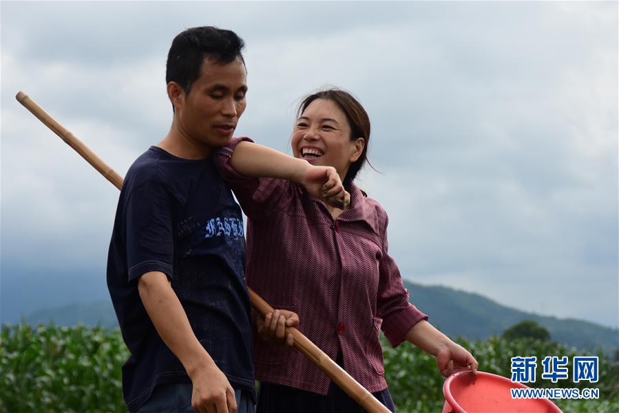 6月1日,刚完成施肥,彭小英(右)看到满头大汗的丈夫范得多,为他拭去脸颊的汗水。 在浙江温州瑞安的马屿镇霞岙村,50岁的范得多和45岁的彭小英夫妇,除了照看八亩农田之外,最大的乐趣就是一起跳自编的“曳步舞”。田埂间、家门口、桥墩下,音乐响起,他们随时起舞。 十八年前,丈夫范得多曾在一次车祸中受伤,并因惊惧过度患上抑郁症。四年前,妻子彭小英开始带着丈夫一起跳舞,二人在热情的舞蹈中挥洒汗水,范得多的情况出现了明显好转。 现在,彭小英和范得多在抖音账户上共有140余万粉丝。每天晚上,他们直播跳舞,屏幕前漾出的笑容感染着越来越多的人。“有活干,有舞跳,我们现在的生活真的很好!”范得多说。 新华社记者郑梦雨 摄