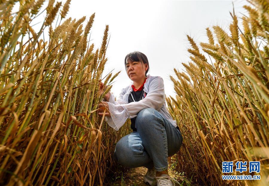 6月2日,在河北省邯郸市临漳县狄邱乡西狄邱村,农业技术人员在麦田内进行小麦测产。新华社记者 王晓 摄