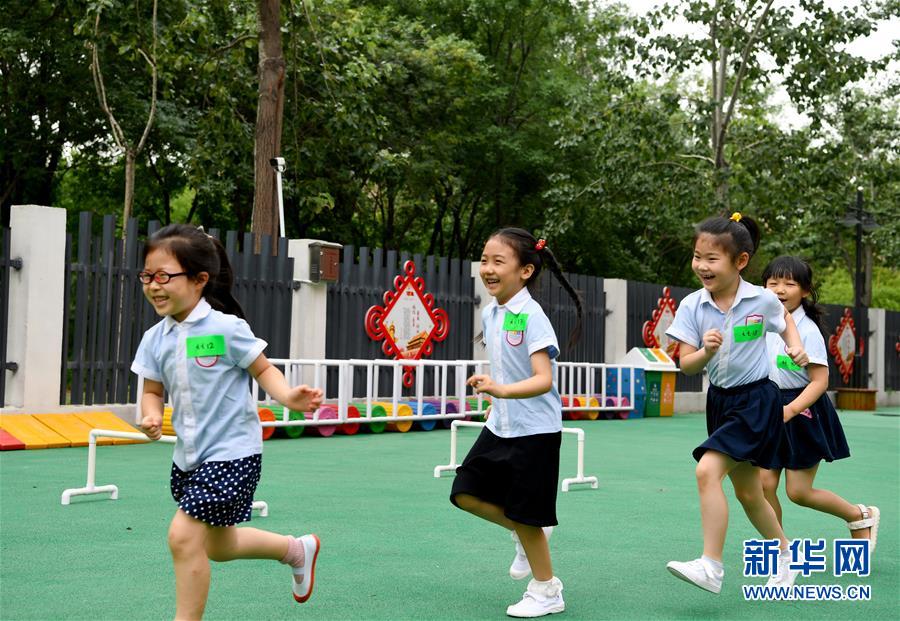 6月2日,小朋友在郑州市郑东新区实验幼儿园操场上进行户外活动。新华社记者 郝源 摄