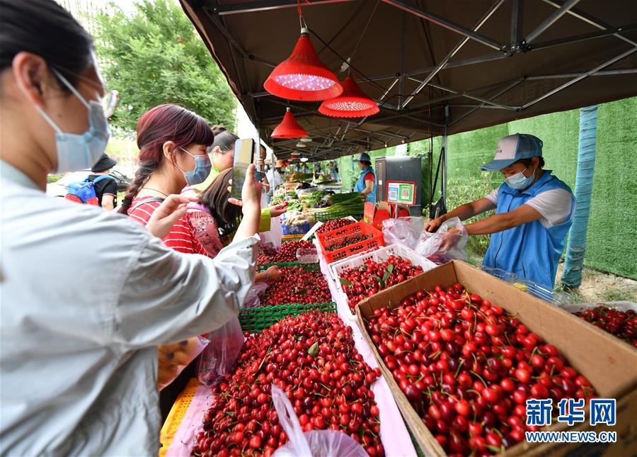 6月2日,在西安市曲江新区公田二路,市民在临时摊区购买果蔬。 近日,陕西省出台《陕西省促进市场消费积极应对新冠肺炎疫情影响若干措施》,在确保安全的情况下,允许城区临街店铺出店经营,允许在居民居住集中区开辟临时摊点摊区,允许流动商贩在一定时间和区域占道经营。 西安市曲江新区城市管理部门在做好疫情防控工作的前提下,在固定时间、固定区域开辟临时摊点,积极推进“地摊经济”发展。 新华社记者 张博文 摄