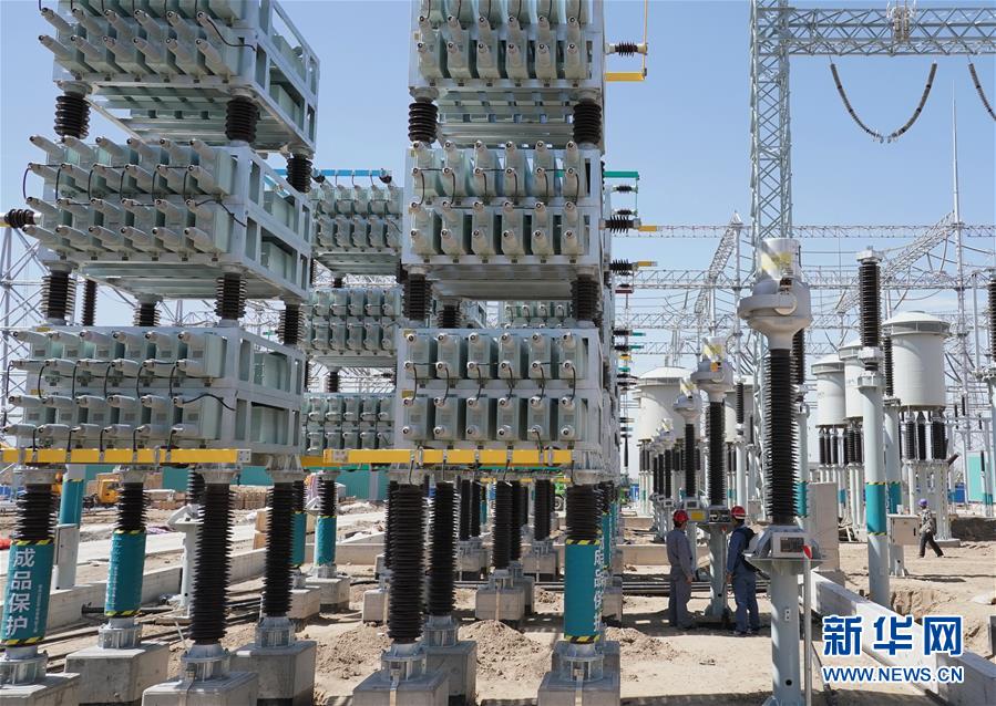 6月3日,工人在张家口市张北1000千伏特高压变电站建设工地施工。 近日,张北至雄安1000千伏特高压交流输变电工程正在加紧建设。据介绍,该工程是提高张家口地区新能源外送能力,服务雄安新区的首条清洁能源大通道。工程计划今年8月底投入运行。 新华社记者杨世尧摄