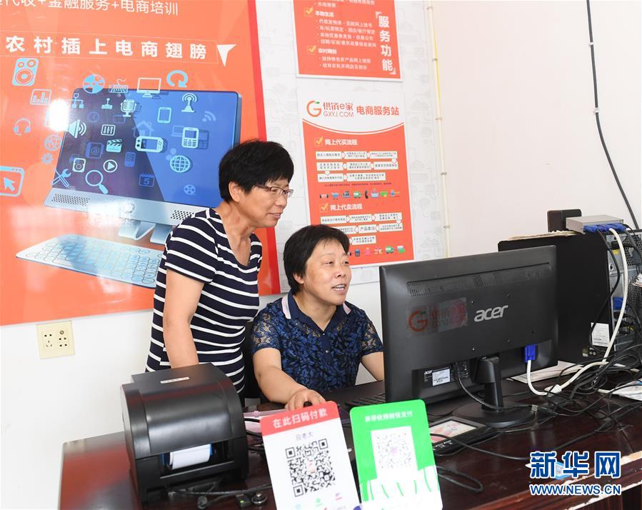 6月3日,在上虞区驿亭镇,镇政府工作人员(右)在舜利水晶杨梅专业合作社指导果农进行电商销售。 近日,浙江绍兴上虞区二都杨梅开采。杨梅是上虞区传统特色农产品,目前上虞区二都杨梅种植面积1651公顷,年产量1.1万吨,2019年二都杨梅成功申报国家农产品地理标志认证。 新华社记者翁忻旸摄