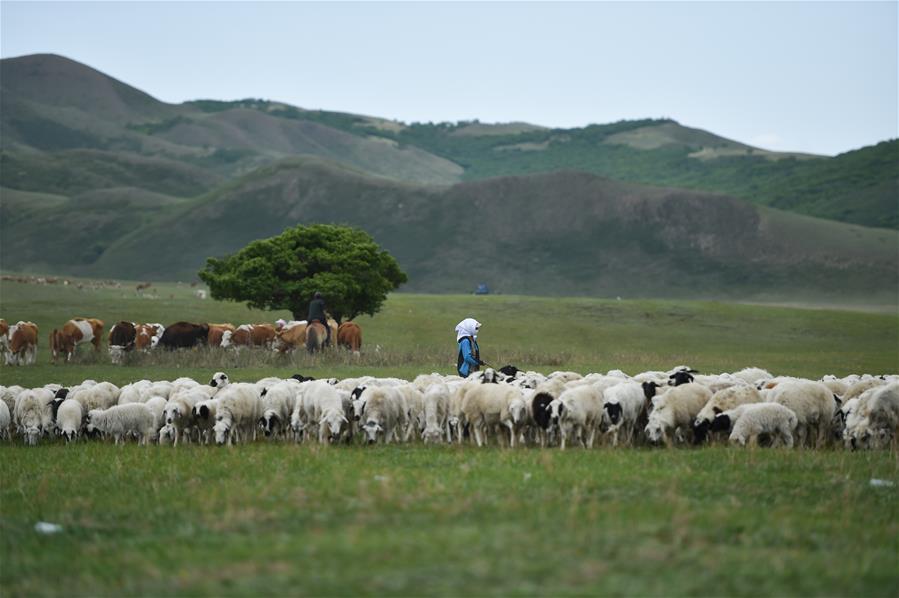 6月2日,牧民在阿鲁科尔沁草原上放牧。新华社记者 刘磊 摄