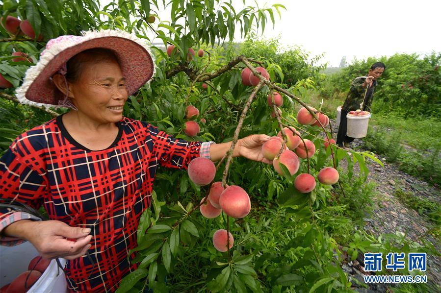 6月4日,果农在贵州省铜仁市玉屏侗族自治县朱家场镇混寨村桃园基地采收水蜜桃。 连日来,贵州省铜仁市玉屏侗族自治县种植的水蜜桃迎来收获季,果农们采摘、装运、销售水蜜桃供应市场,一派丰收繁忙景象。 近年来,贵州省铜仁市玉屏侗族自治县利用独特气候优势和地理条件,大力发展山地特色水果产业,采取“企业+合作社+农户”的生产经营模式,引导农民种植优质桃品种,并形成不同季节错峰上市的规模桃产业,带动了农民持续稳定增收。 新华社记者 杨楹 摄
