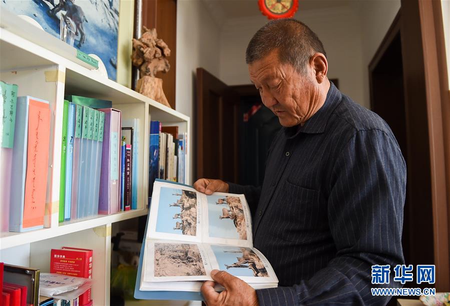 6月3日,阿日并在家中翻看自己多年来拍摄的岩羊照片。新华社记者 彭源 摄