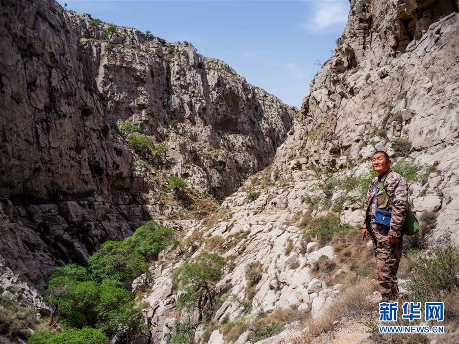 5月14日,阿日并在山间寻找岩羊踪迹。新华社记者 连振 摄