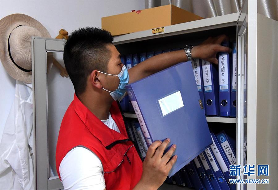 吕洋在整理查看辖区内常住人口信息(6月2日摄)。新华社记者李安摄