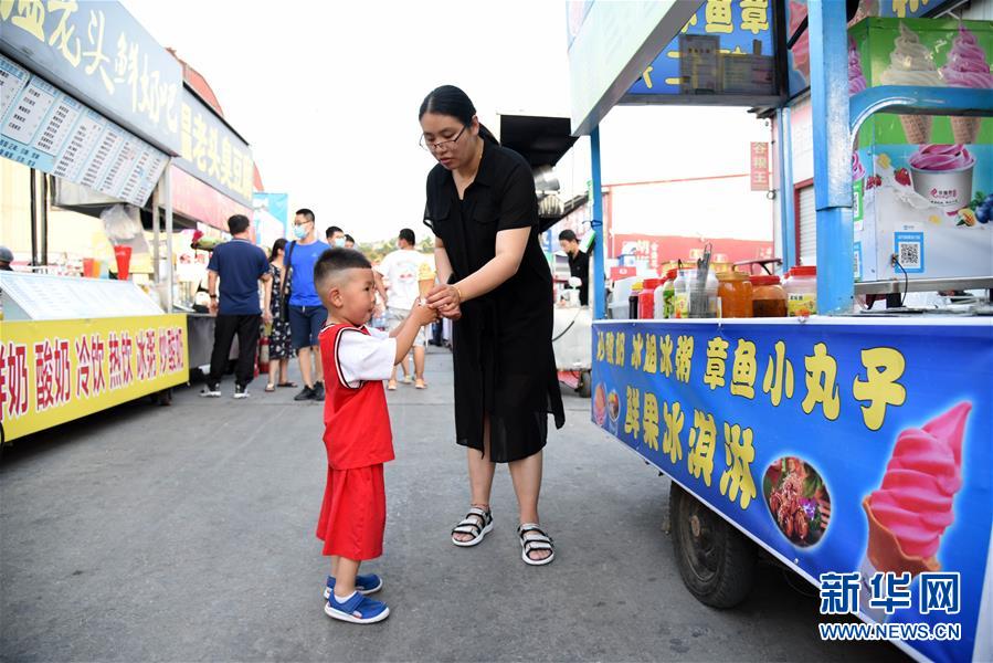 6月3日,市民在济南环联夜市休闲。 新华社记者 王凯 摄
