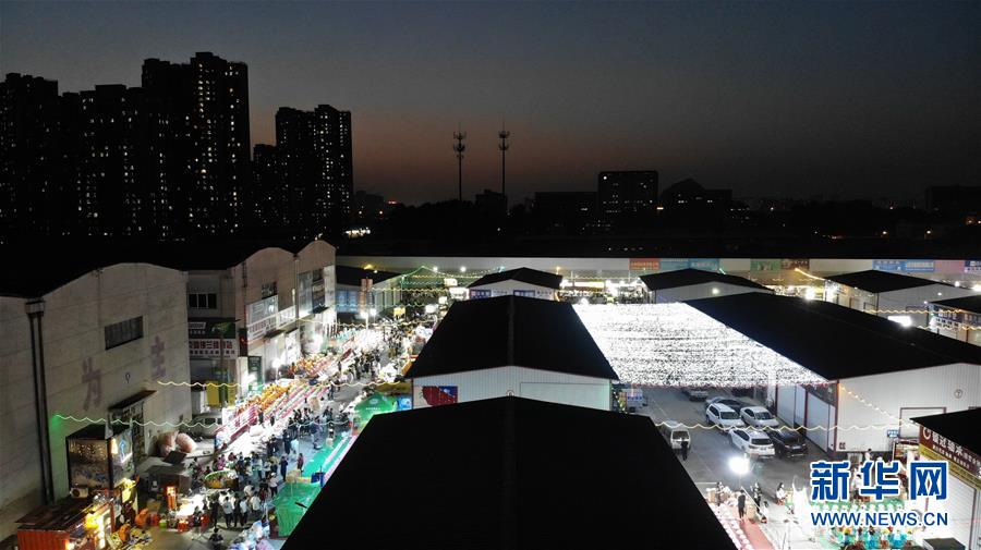 图为6月3日拍摄的济南环联夜市(无人机照片)。 新华社记者 王凯 摄