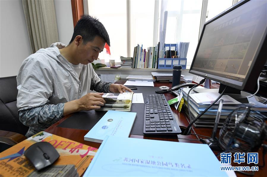 6月3日,李学明在学习鸟类知识。 新华社记者 冯开华 摄