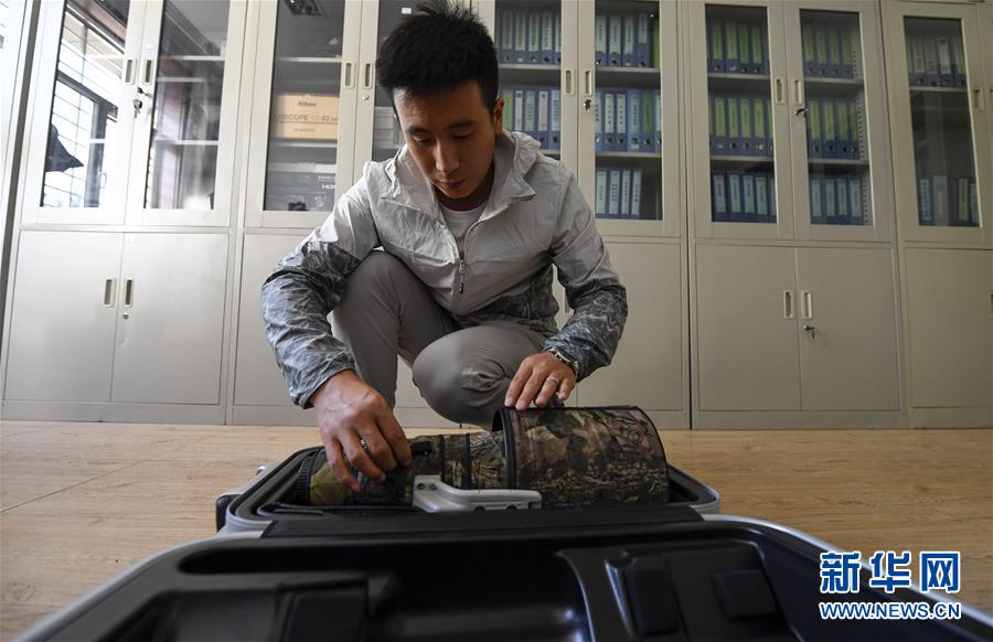 6月3日,李学明在整理设备,准备开始当天的巡护监测工作。 新华社记者 冯开华 摄
