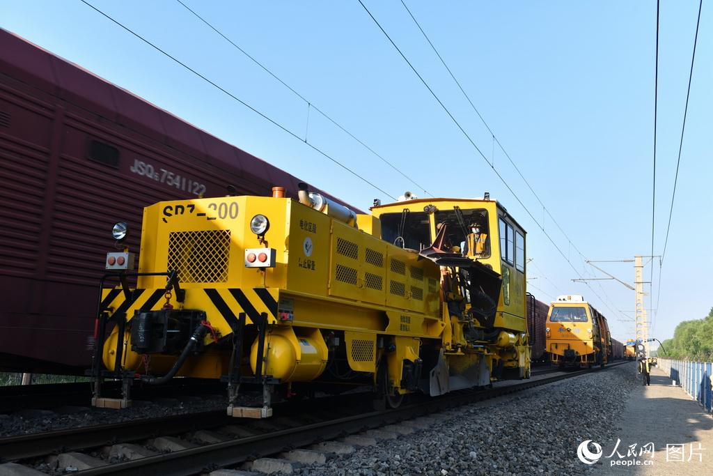 6月4日,一组大型养路机械在京哈铁路线得胜台站至铁岭站间进行线路清筛作业。