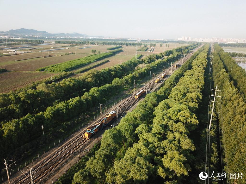 6月4日,一组大型养路机械在京哈铁路线得胜台站至铁岭站间进行线路清筛作业。