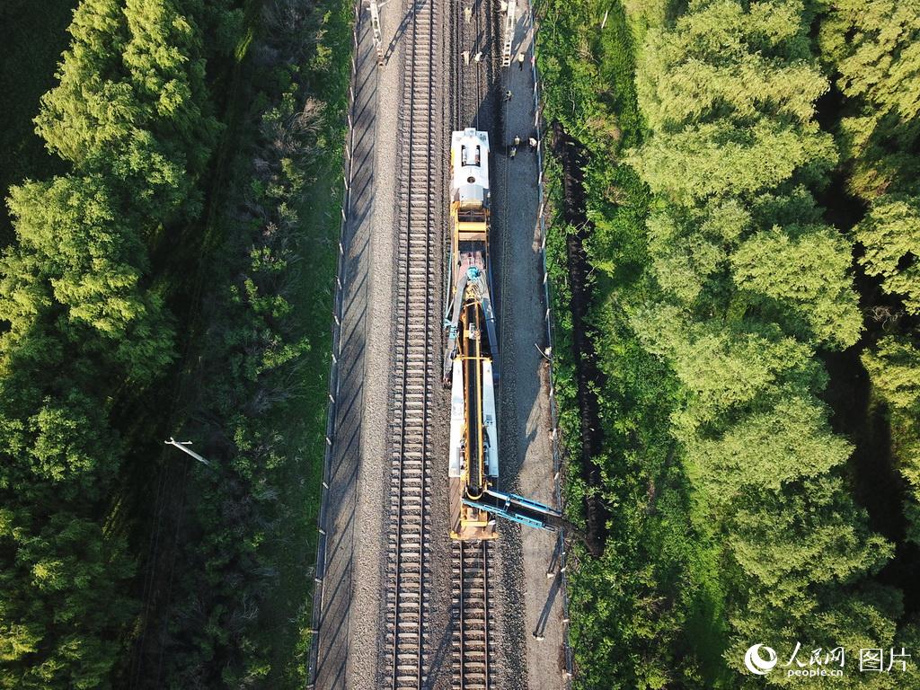 6月4日,一组大型养路机械在京哈铁路线得胜台站至铁岭站间进行线路清筛作业。