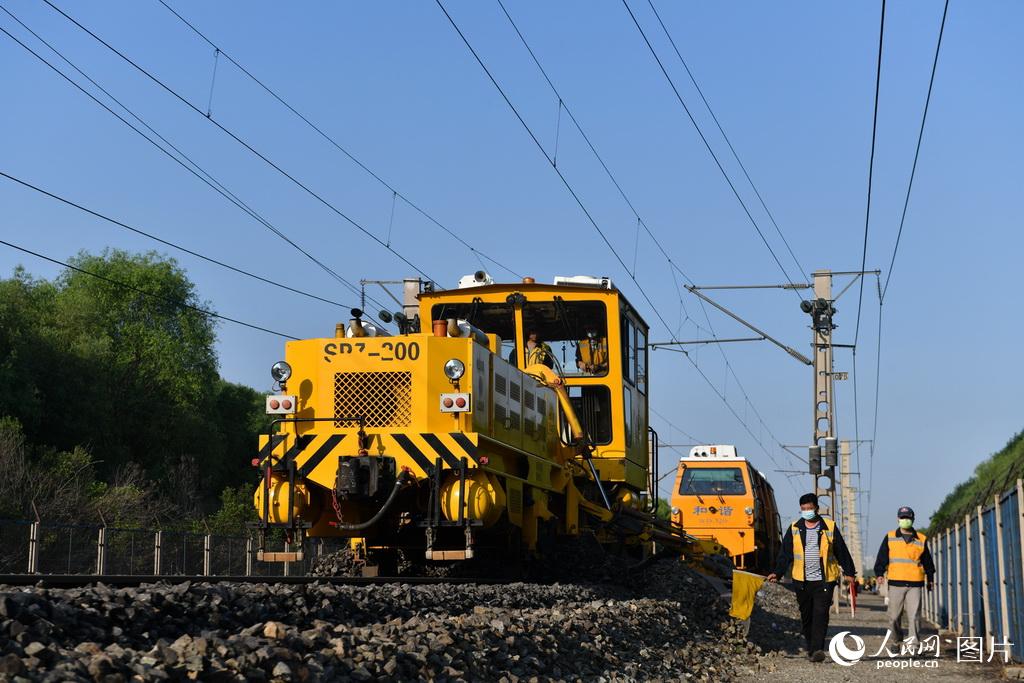 6月4日,一组大型养路机械在京哈铁路线得胜台站至铁岭站间进行线路清筛作业。