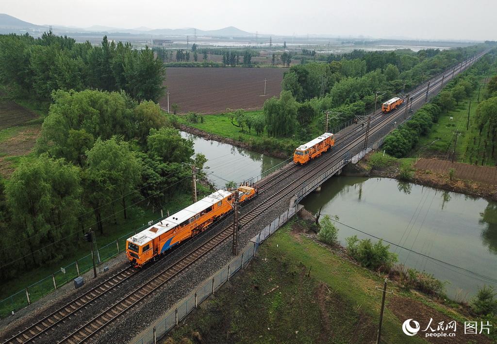 6月4日,一组大型养路机械在京哈铁路线得胜台站至铁岭站间进行线路清筛作业。